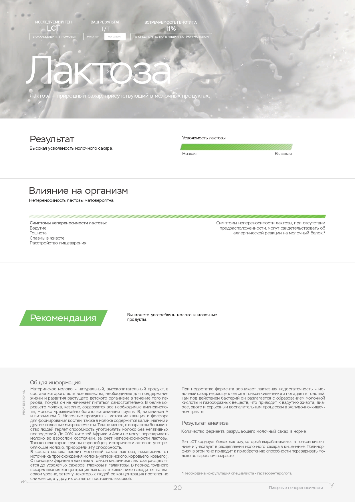 Данная генетическая панель исследования дает возможность узнать о потенциале вашего иммунитета. Провести оценку рисков проявление аллергии и перехода воспаления в хроническую форму. Узнать, насколько сильны первые «линии обороны» организма в борьбе с вирусами, в том числе с COVID-19, и каковы риски легочных осложнений. Знание своих индивидуальных генетических предрасположенностей и возможностей позволяет подготовиться к встрече с возбудителем заболевания, скорректировать свой рацион питания и образ жизни.